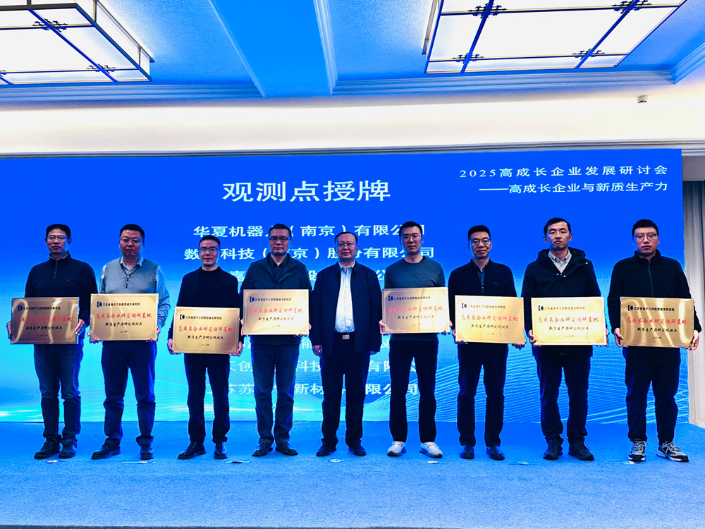 会议期间举行了高长成企业“新质生产力研究观测点”授牌、产业研究员证书颁发和优秀论文表彰仪式。华夏机器人(南京)有限公司等企业成为江苏省高成长企业研究博士工作站“新质生产力研究观测点”。在“企业问诊融智会”阶段,专家学者与企业代表就技术转化、资金支持、人才引育等企业发展中的关键问题进行了深入研讨。