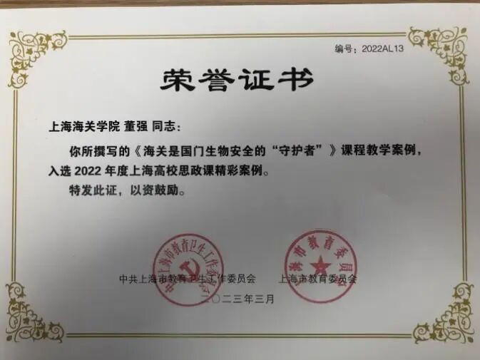 多元协同,立足海关历史文化资源优势拓宽育人路径。学院大力开展以宣传、践行和研究海关史为主线的海关历史文化教育,立足海关历史文化资源优势拓宽育人路径。学院将前沿学术成果有机融入教学,丰富、拓展、创新课堂内容,并从课堂内容延伸,指导学生创新创业项目,在实践中实现学生对海关历史知识更高层次的理解与内化,孵化出一批优秀成果。近年来,相关教师团队共指导学生国家级创新创业项目3项,其中1项入选第12届全国大学生创新创业年会论文交流;1项入选2022年“知行杯”暑期社会实践项目;1项入选上海市红色思政教学资源案例库。指导学生排演“关魂”“一抹红”等海关历史或红色舞台情景剧2部,在学校和海关系统内取得良好反响。