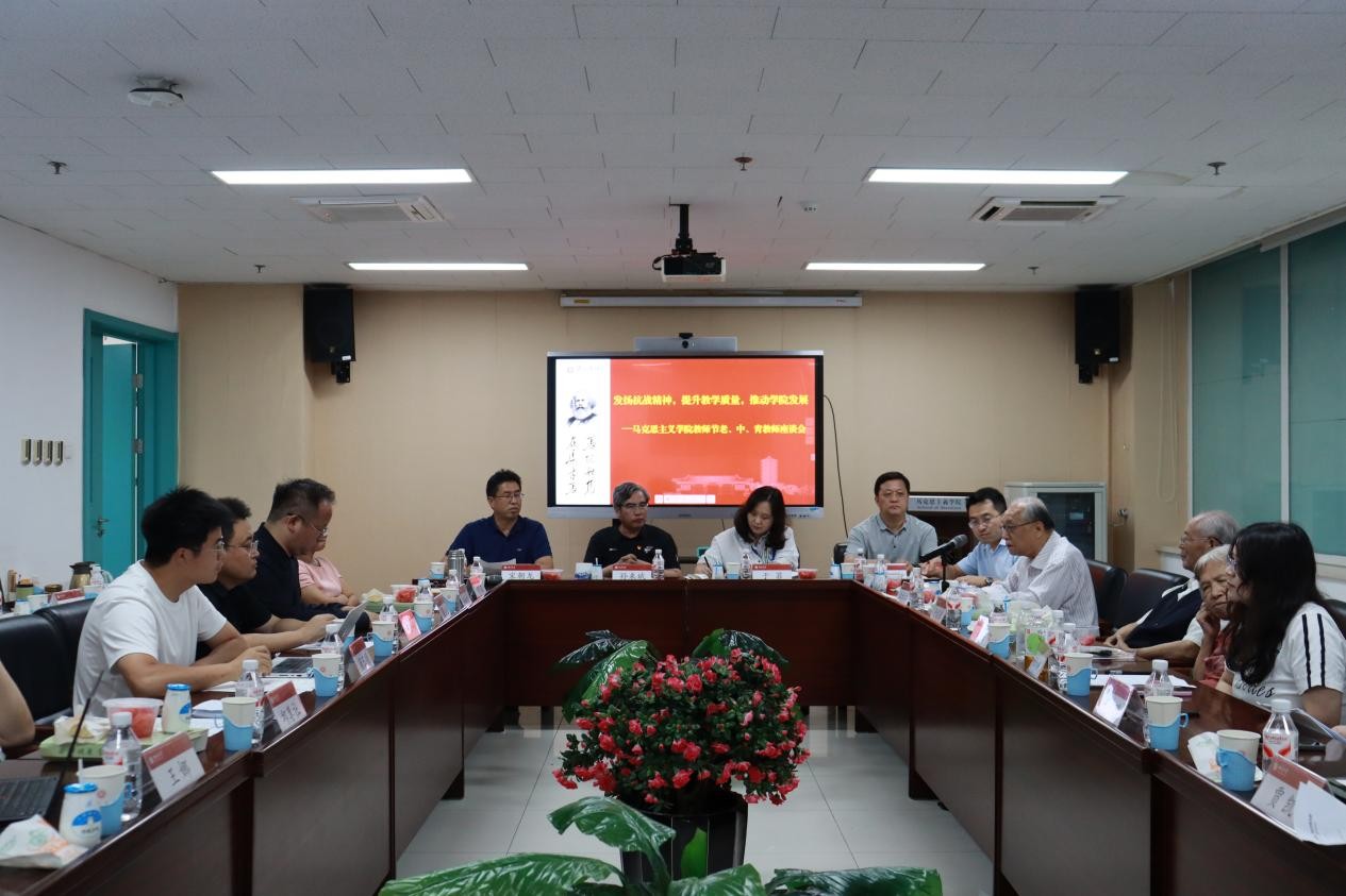 9月11日上午,北京大学马克思主义学院于理科五号楼301室举办“发扬抗战精神,提升教学质量,推动学院发展——老、中、青教师座谈会”。学院党委书记孙来斌、北京大学教务长办公室副主任于菲,研究生思政课分管副院长宇文利、本科生思政课分管副院长陈培永,荣休教师代表江长仁、仓道来、林娅、祖嘉合、邱尊社,学院各教师支部青年教师代表,学院办公室主任、副主任和工作人员,部分学生代表,共36人齐聚一堂,共话育人初心,共商教学质量提升举措。座谈会由副书记、副院长宋朝龙主持。