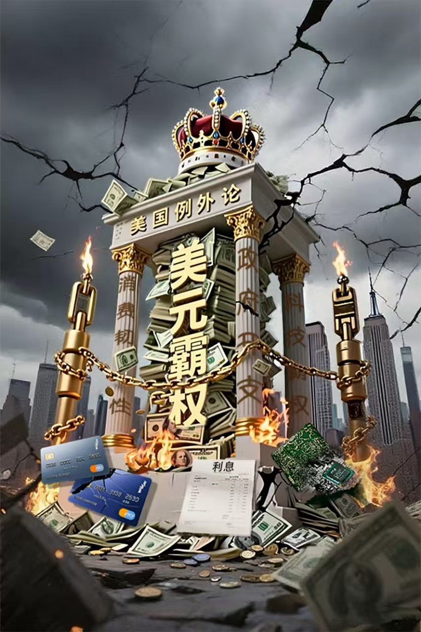 “美国例外论”赖以存在的经济支柱——美元霸权、消费韧性、政府开支、科技霸权,由于其内在脆弱性、不可持续性,正在发生崩塌。巨额的国债、信用卡违约率的上升、公共开支上的大手大脚、高度垄断对创新的阻碍等问题,使得“美国例外论”的皇冠摇摇欲坠。无视规律的“例外”叙事,终难逃轰然坠地的宿命。