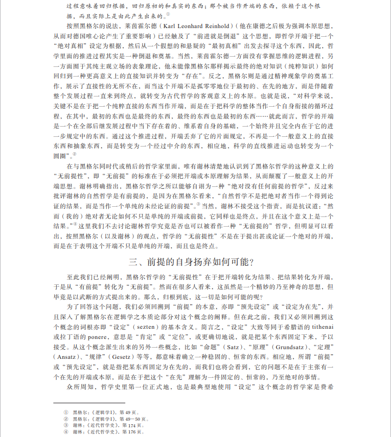 关键词:无前提;开端;本原;反映;设定